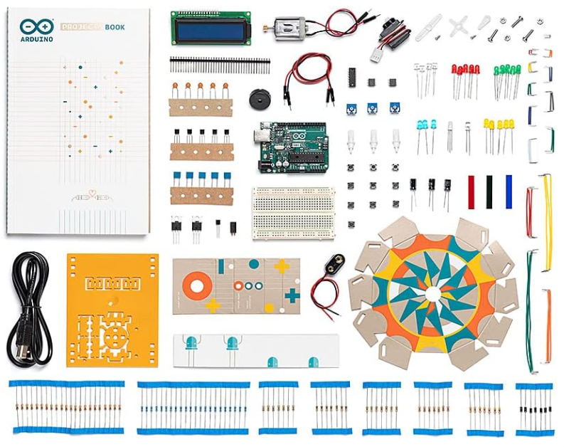 - Complete DIY Electronics Kit – The Official Arduino Starter Kit includes everything you need to begin exploring the world of electronics and programming, featuring 12 hands-on DIY projects that teach key concepts in coding and circuit design.